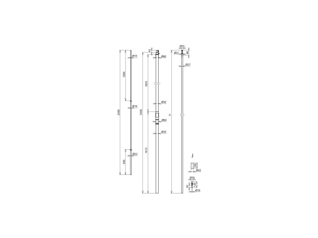 HVI power Conductor (high-voltage-resistant, insulated down conductor) inside the supporting tube for keeping the separation distance from conductive parts according to IEC/EN 62305-3 in order to prevent dangerous flashover between parts of the external lightning protection system and indoor conductive system components (electrical installation, pipes, etc.). In order to avoid creeping discharge, the HVI power Conductor has a special outer sheath which makes it possible to discharge high lightning impulse voltages to a reference potential. HVI power Conductor (black) with internal sealing end and equipotential bonding spring element inside the supporting tube (length 3500 mm) with air-termination rod (D22 / 16 / 10 mm length 2500 mm) and an earth connection element. Equivalent separation distance s ≤ 90 cm (in air), s ≤ 180 cm (solid material).Doplňkové parametry
