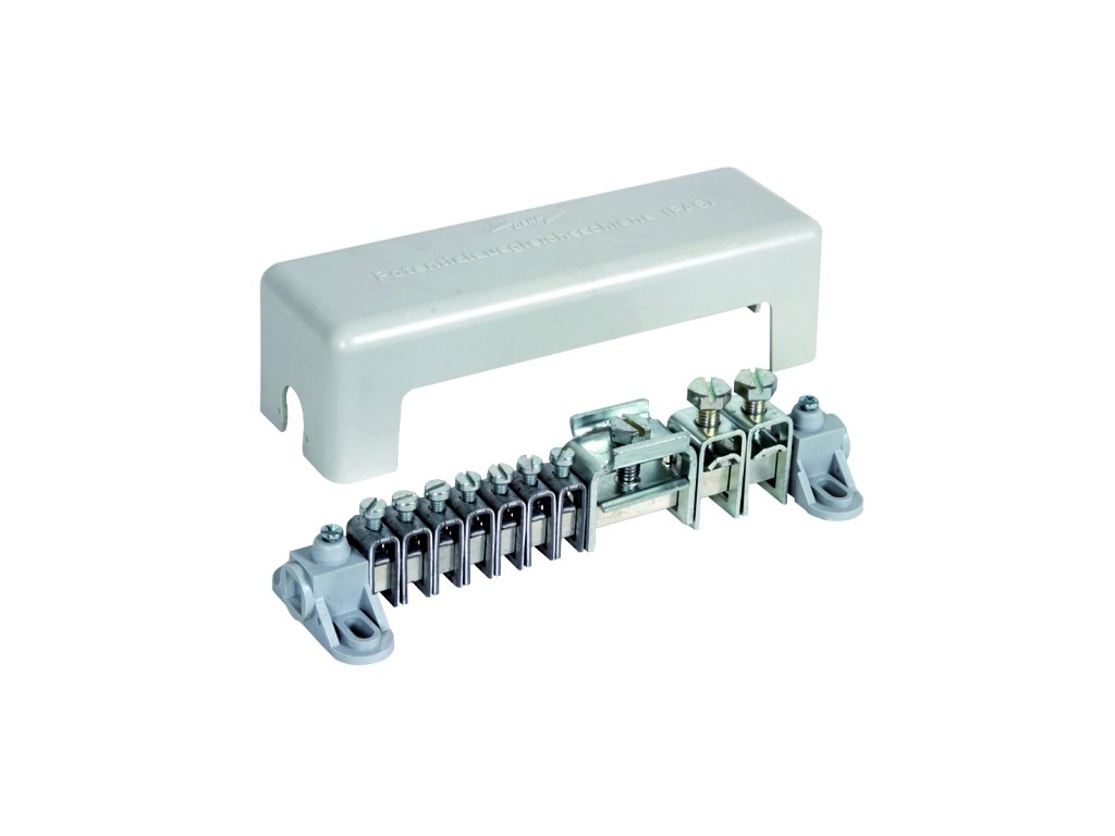 Equipotential bonding busbar according to EN 62561-1 for protective and functional equipotential bonding according to IEC 60364-4-41/60364-5-54 (DIN VDE 0100-410/540) (main earthing busbar) and lightning equipotential bonding according to IEC/EN 62305-3. Design A, tested according to DIN VDE 0609, terminal block St/gal Zn, grey plastic bar frames and cover (halogen-free), cover is sealable and can be labelled.Zusätzliche Parameter