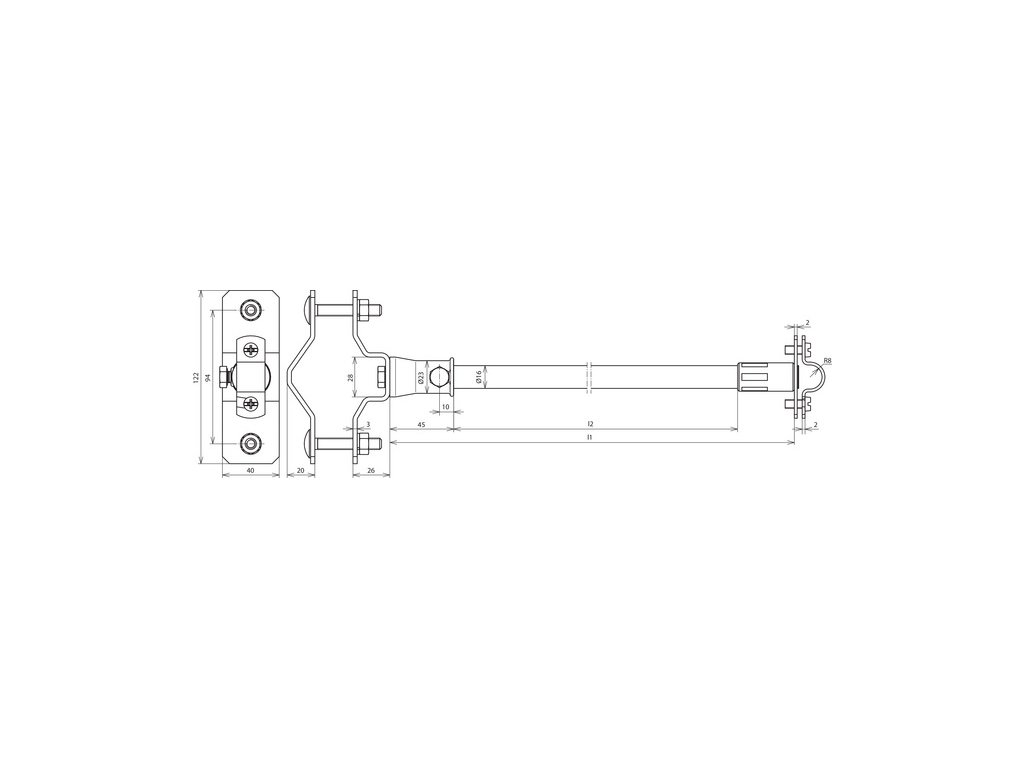 DEHN SET Iso výložník GFK16 D16 U48-60 L1030 V2A
