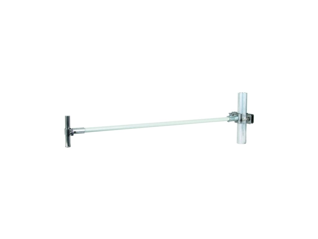 Spacer for air-termination rods for keeping the separation distance according to IEC 62305-3. Spacer bar made of glass-fibre reinforced plastic (GRP), D 16 mm, UV-stabilised, light grey colour, material factor km = 0.7. With rod holder (fixed conductor routing) and pipe clamp (clamping range D40-60 mm).Additional parameters
